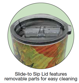 • Slide-to-Sip Lid features removable parts for easy cleaning